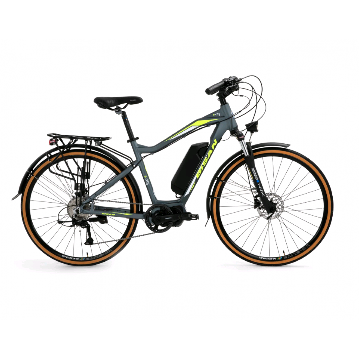 Bisan E-City 28 Jant Hd Elektrikli Bisiklet (Gri-Yeşil)